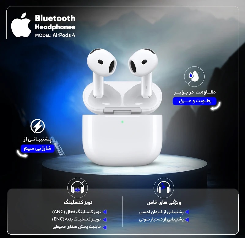 هدفون بلوتوثی اپل مدل AirPods 4 (نسخه دارای نویز کنسلینگ)