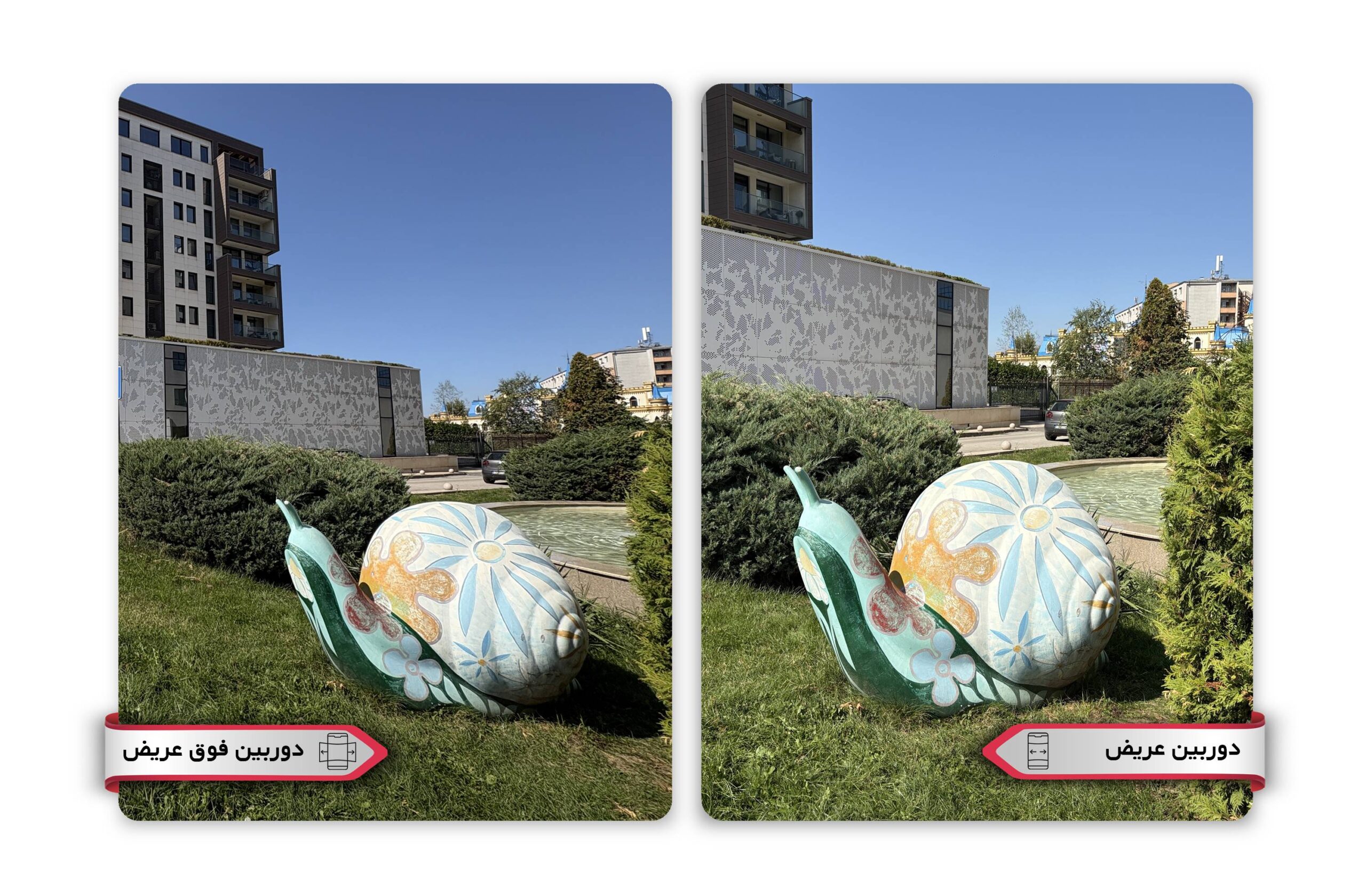 دوربین فوق عریض (اولتراواید) امسال ارتقای مهمی دریافت کرده است. این سنسور 12 مگاپیکسلی حالا دیافراگم روشنتر f/2.2 و مهمتر از آن، فوکوس خودکار دارد. کیفیت کلی عکسهای اولتراواید خوب ارزیابی شده است. جزئیات ثبت شده در فریم خوب، نویز کم و رنگبندی آن با دوربین اصلی (عریض) هماهنگ است. البته، همانطور که انتظار میرود، وضوح آن به اندازه دوربین اصلی نیست و محدوده دینامیکی آن کمی محدودتر است، اما در مجموع یک پیشرفت خوب محسوب میشود.